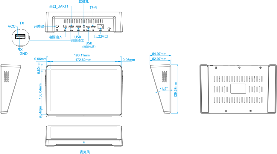| 接口: | DC-in,RJ45×1,USB×2,COM×1,Type-C,TF卡槽等 |